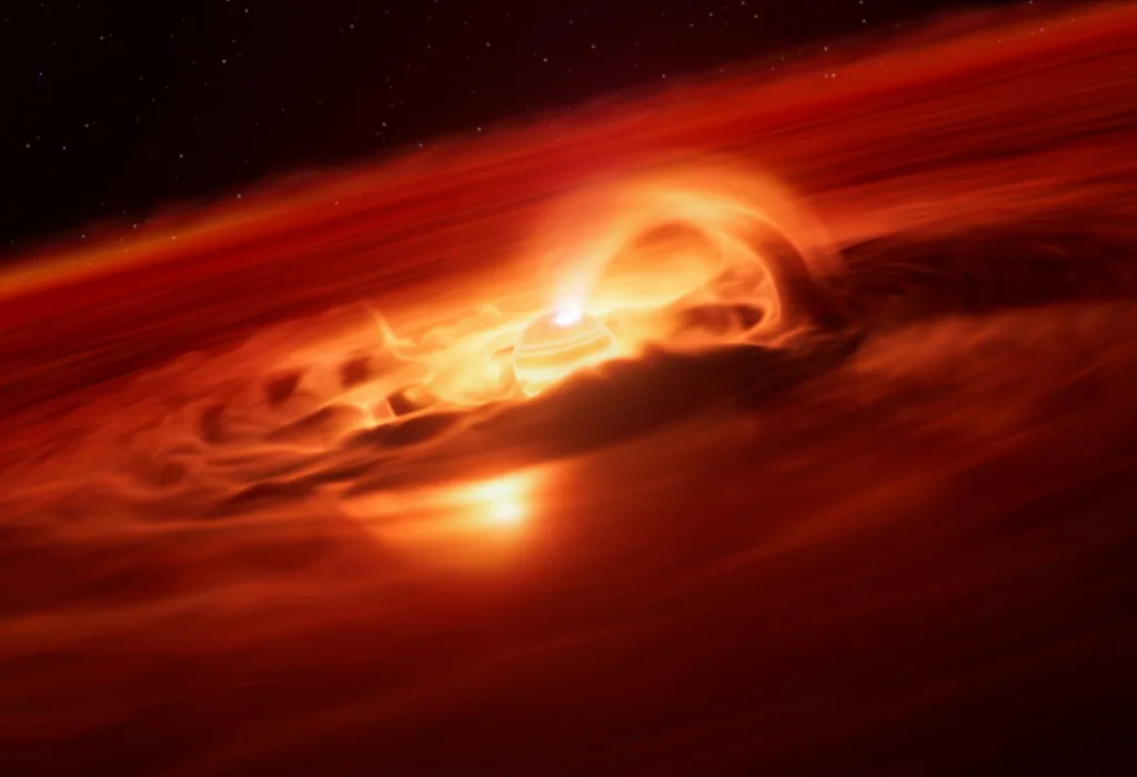 رصد علماء الفلك كوكبًا هاربًا يلتهم الغاز والغبار بمعدل قياسي، لكنهم لا يستطيعون تفسير سلوكه العجيب.